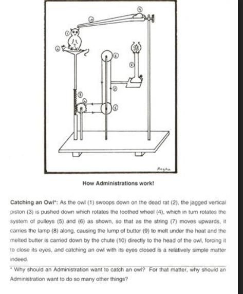 (From V. Raghunathan’s series ‘How Administrations Work!’ featured in the Financial Express. A satire on administration, based on Goldberg machines).