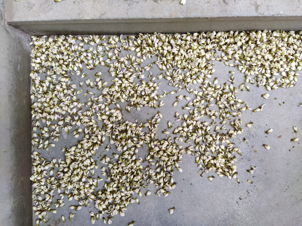 It was time to add more shades to the palette. It was the turn of the tiny eggshell-white neem flowers, and the slighter larger ivory karanj flowers to make their appearance. These emerged coyly amid the fresh foliage on their parent plants. The incredible shades of green, that defied definition or description, merged flawlessly with the blossoms. But while the leaves clung on firmly, the flowers, having played their brief but vital part in interaction with the birds and bees who thronged to feast on the nectar, began their graceful descent from the canopies, and carpeted the ground below. The neem flowers merged with the soil silently and unobtrusively. The karanj flowers made their presence felt with a crunch crunch sound when trod upon. The white faded from the canvas, even as the leaves took on deeper and darker shades of green.